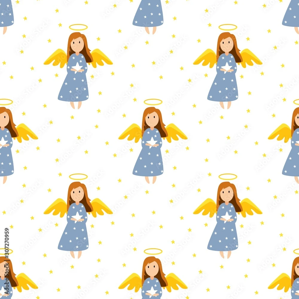 Fotografia Christmas Cute Angels Seamless Pattern