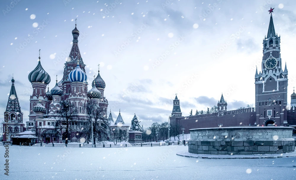 Fotografia Christmas Time In Moscow – Snow Falling On Red Square, Russia