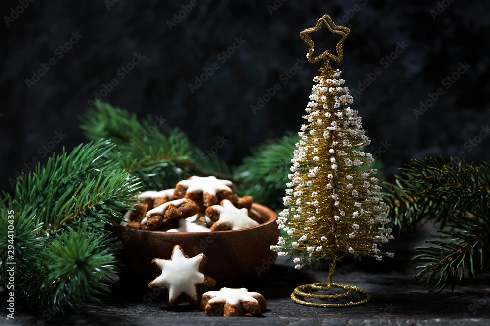 Fotografia Decorative Christmas Tree And Gingerbread Cookie
