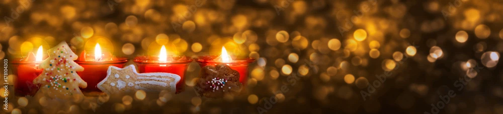Fotografia Four Red Advent Candles With Christmas Cookie.
