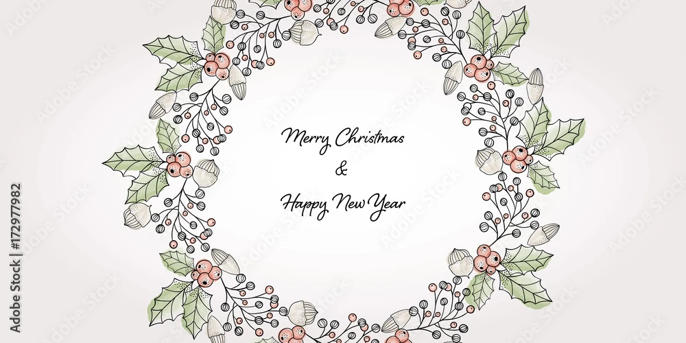 Fotografia Hand Drawn Wreath With Watercolor Elements And Christmas Greetings