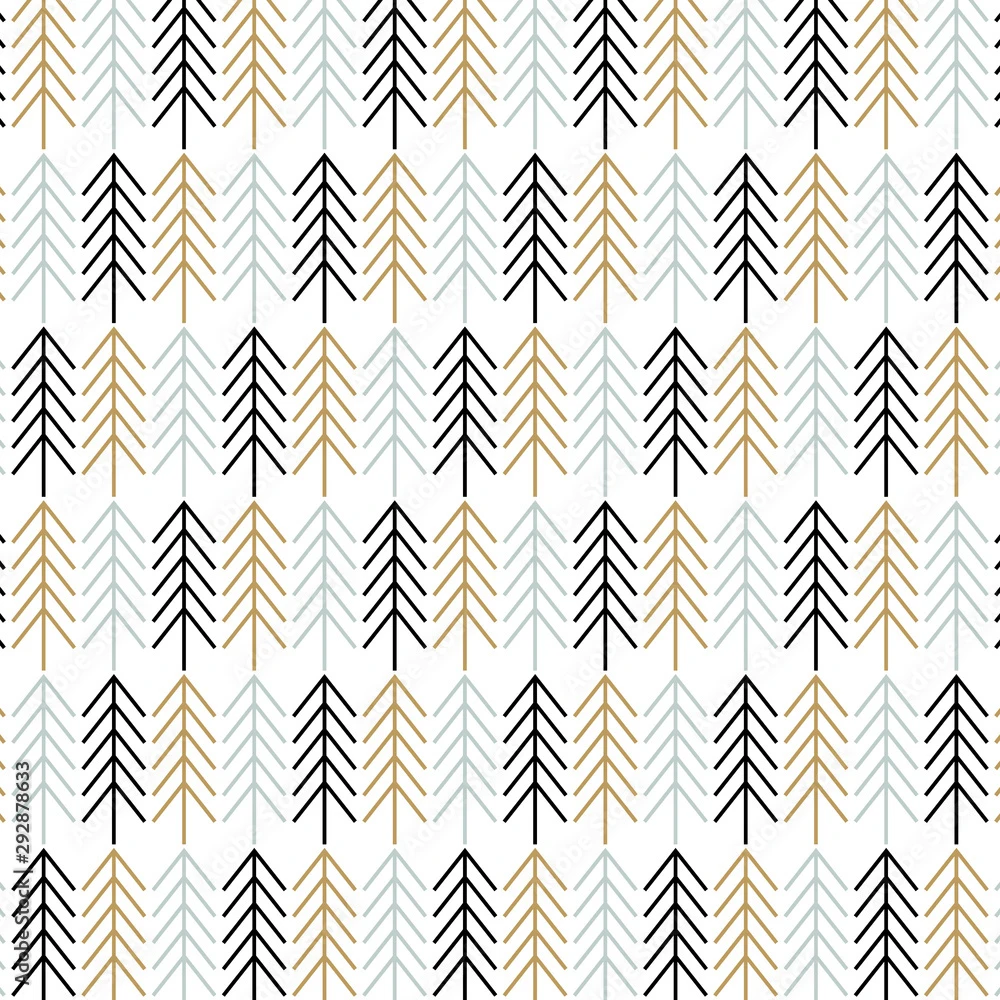 Fotomurale Christmas Tree Pattern Background. Scandinavian Design